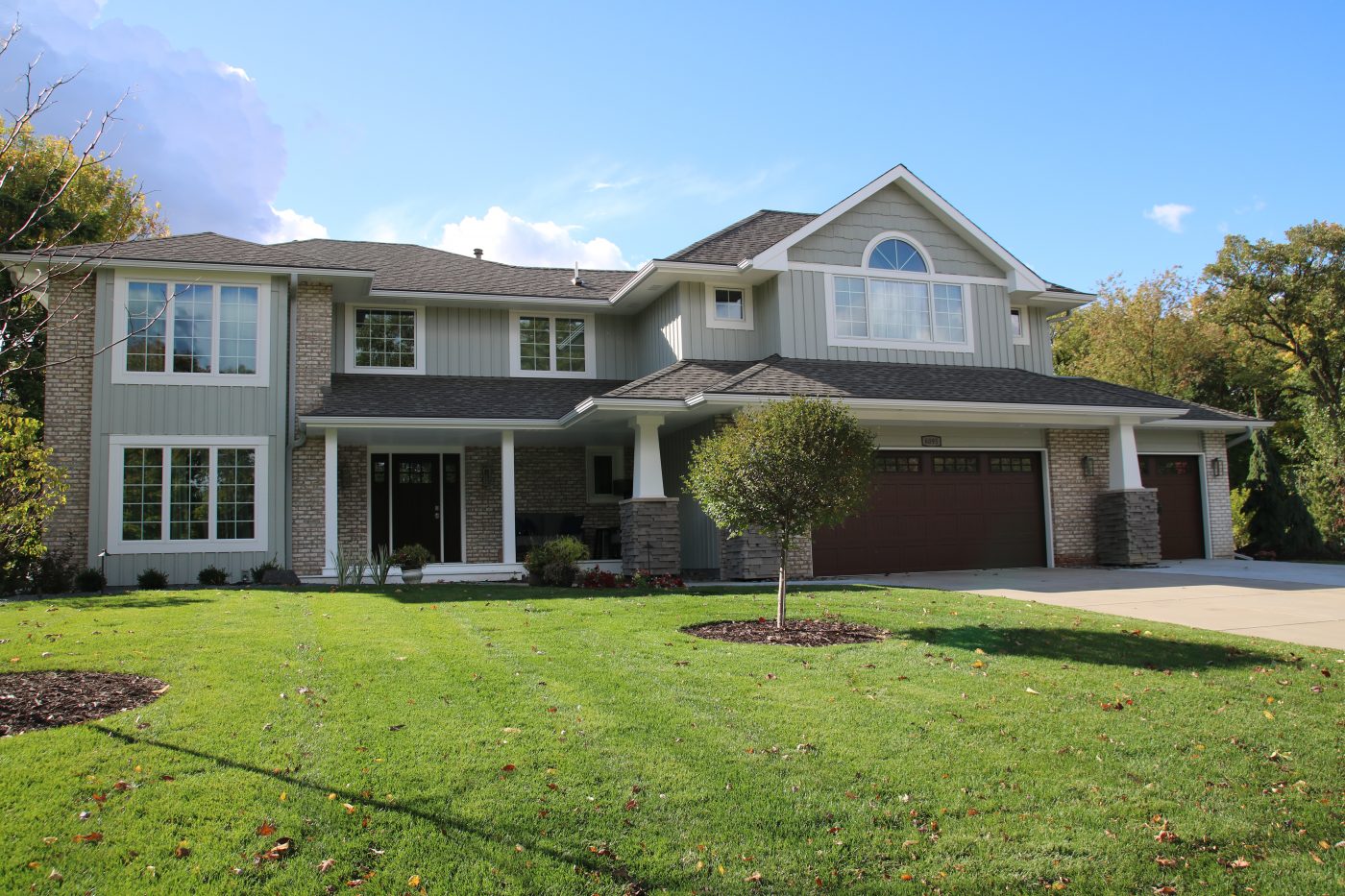 Features Thermosteel Carriage style insulated steel overhead garage doors, Modera Ledgestone column bases, Tapered Fypon columns, LP Smartside, pre-finished panel and lap siding, GAF brand high profile shingles, Pella brand windows.